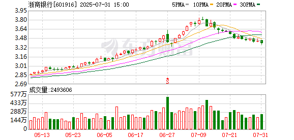 浙商银行7月31日大宗交易平台出现一笔成交,成交量408.00万股,成交金额1383.12万元,大宗交易成交价为3.39元。该笔交易的买方营业部为兴业证券股份有限公司上海锦康路证券营业部,卖方营业部为中信证券股份有限公司总部(非营业场所)。